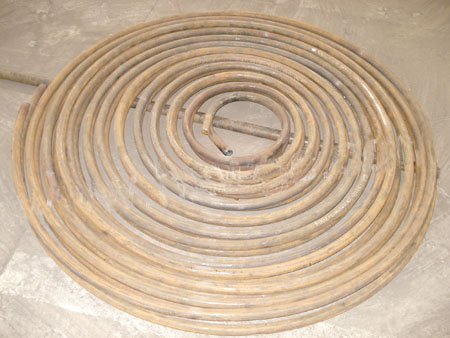 簡單的來講:蚊香盤管就是是由原來一大卷的銅管彎,經過加工製成長度由15米到300米不等規格的盤管產品罷了,這樣以便用於銅管產品的熱處理、運輸及現場安裝配管等。此外,因經過加工處理的盤管外形形狀與蚊香近似,故叫蚊香盤管。傳統的蚊香盤管生產方式,是先把銅管加工成所需長度的直管,然後再人工喂料給彎管機,盤製成蚊香盤管。